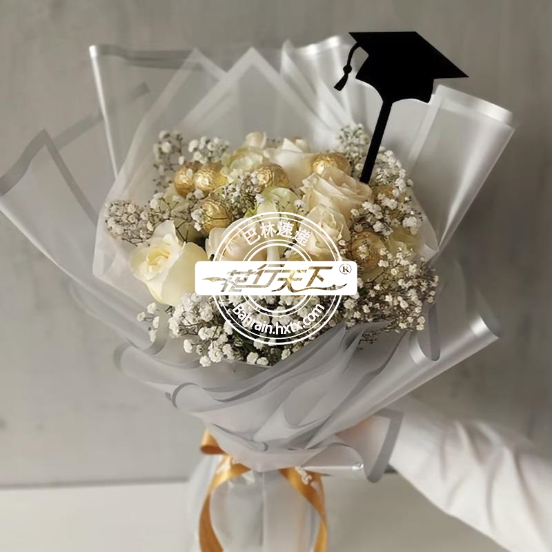 白玫瑰和比利时巧克力组成、精美包装.