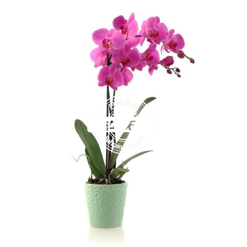 描述: 粉色兰花绿植、陶瓷花盆装。